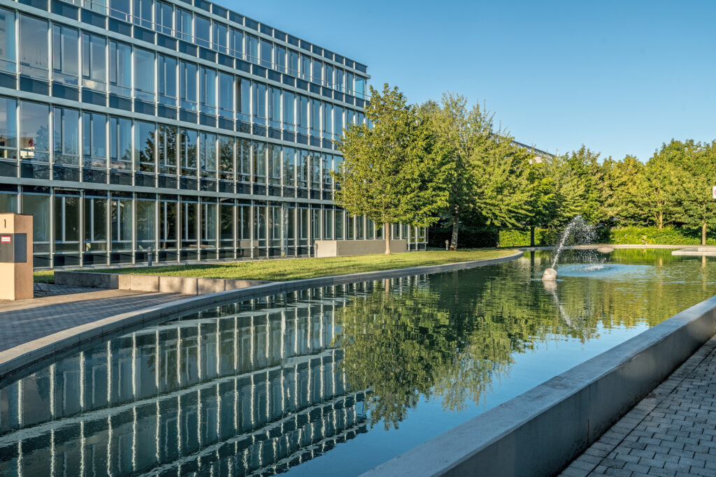Mit frischem Konzept und grüner Lunge: Bürokomplex Hub Eight wird zum modernen und attraktiven Zentrum des Munich Airport Business Parks