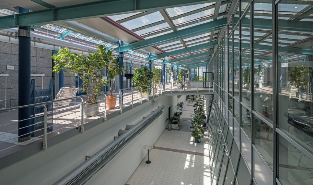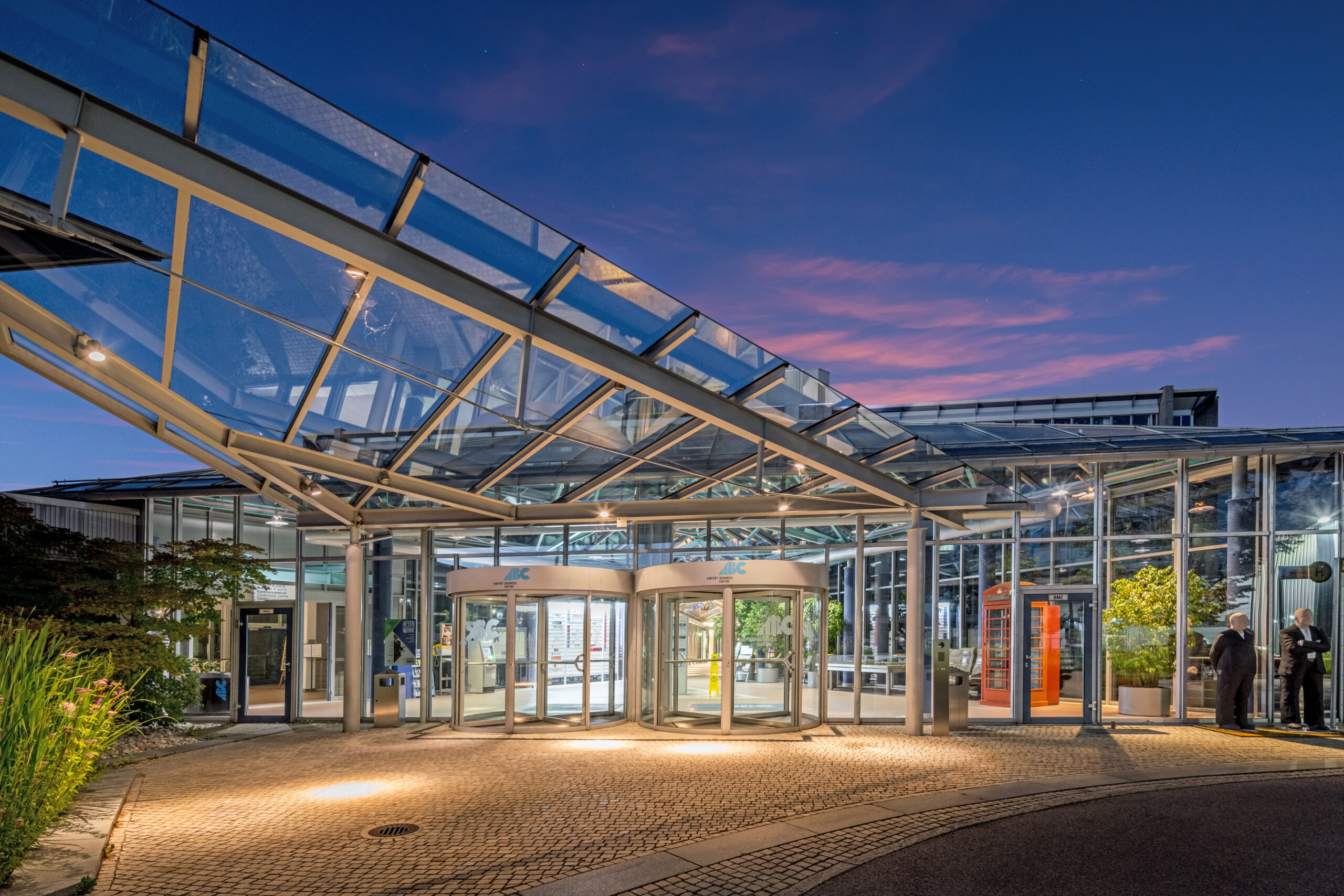 Das AIRPORT BUSINESS CENTRE (ABC) ist ein modernes Bürogebäude und Konferenzzentrum in unmittelbarer Nähe des Münchner Flughafens und im direkten Einzugsbereich des Wirtschaftsraumes München. Seit Juli 1994 ist es Sitz internationaler Hightech-, Software-, Multimedia- und Managementfirmen. Der Gebäudekomplex vereint in hoher Qualität sämtliche baulichen und technischen Einrichtungen, die für effiziente und kostenwirksame Geschäftsabwicklung, Kommunikation und Konferenztätigkeit gebraucht werden. Das ABC liegt in einem großen Grundstück inmitten weitläufiger Grünanlagen. Den Campus bilden Bürogebäude, Konferenzzentrum, Lounge, Cafeteria, Betriebsrestaurant sowie Parkhaus und Besucherparkplätze. Das Bürogebäude erfüllt mit modernster technischer Ausrüstung alle zeitgemäßen Anforderungen an Ergonomie und Kommunikationsmöglichkeiten und bietet damit optimale Arbeitsbedingungen. Sämtliche Räume des ABC sind mit Hohlraumböden und teilweise mit einem Bürstenkanalsystem ausgestattet. Die Büros sind mit einem individuell regelbaren Heizungs- und Kühldeckensystem ausgerüstet, das mit Grundwasser und Wärmepumpen außerordentlich kostengünstig und zugleich umweltschonend betrieben wird. Für die Beleuchtung der Räume wurde eigens ein neues energiesparendes Beleuchtungssystem entwickelt, das erstmals blendfreies Arbeiten am Bildschirm ermöglicht. Das ABC verfügt über eine eigene Notstromversorgung. Eine Anbindung an die Unterbrechungsfreie Stromversorgung ist möglich. Die Anbindung an das Glasfasernetz gewährleistet leistungsstarke Arbeitsplätze. Das ABC verfügt außerdem über einen Lastenaufzug, der bis zu 2,5 Tonnen trägt. Das in den Gebäudekomplex integrierte moderne Konferenzzentrum ist auf flexible Nutzung zugeschnitten: Die Größe der einzelnen Konferenzräume und deren technische Ausstattung können an individuelle Wünsche angepasst werden. Das Parkhaus mit 745 Stellplätzen ist vom Verwaltungsgebäude über das Casino/Konferenzzentrum mittels eines gläsernen Durchgangs bequem und witterungsunabhängig zu erreichen